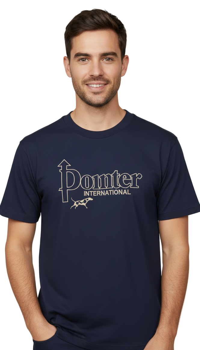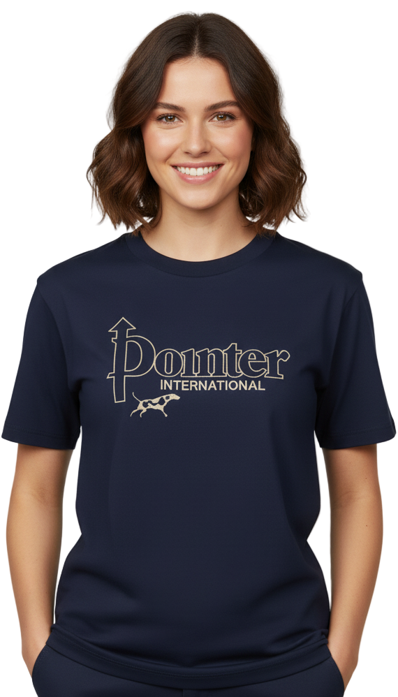 Feel luxurious and sophisticated wearing this exclusive Pointer International logo T-Shirt in classic navy. Its exquisitely embroidered logo subtly hints at the world of fashion, crafted with the finest care to ensure the perfect fit and feel. Elevate your wardrobe with this timeless apparel!