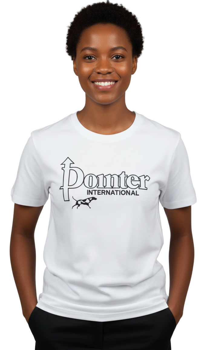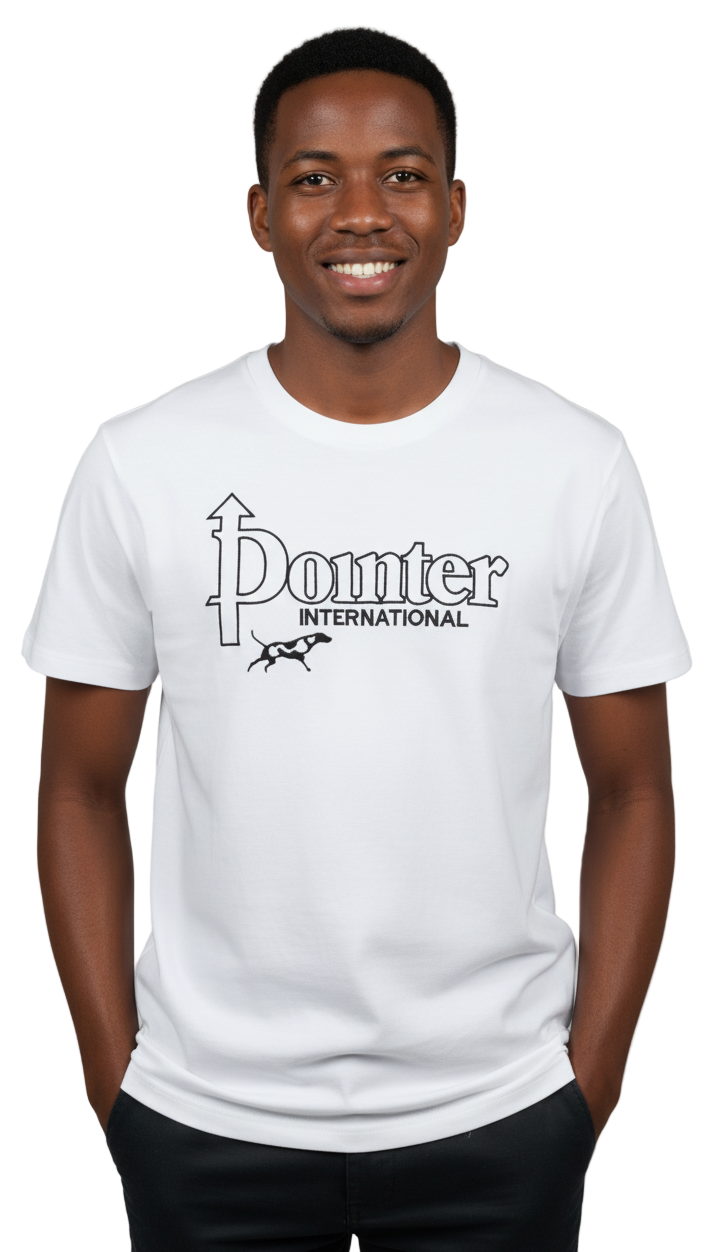Feel luxurious and sophisticated wearing this exclusive Pointer International logo T-Shirt in classic white. Its exquisitely embroidered logo subtly hints at the world of fashion, crafted with the finest care to ensure the perfect fit and feel. Elevate your wardrobe with this timeless apparel!