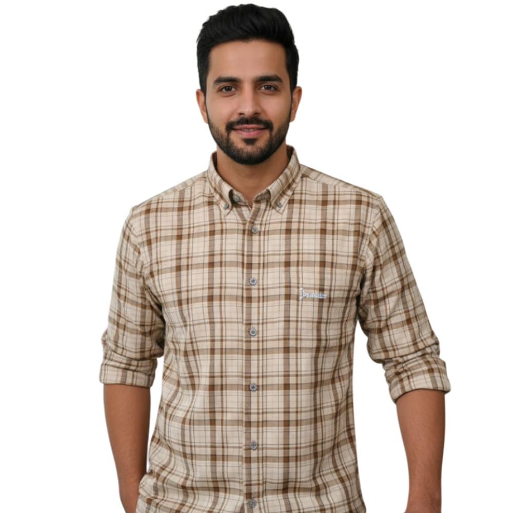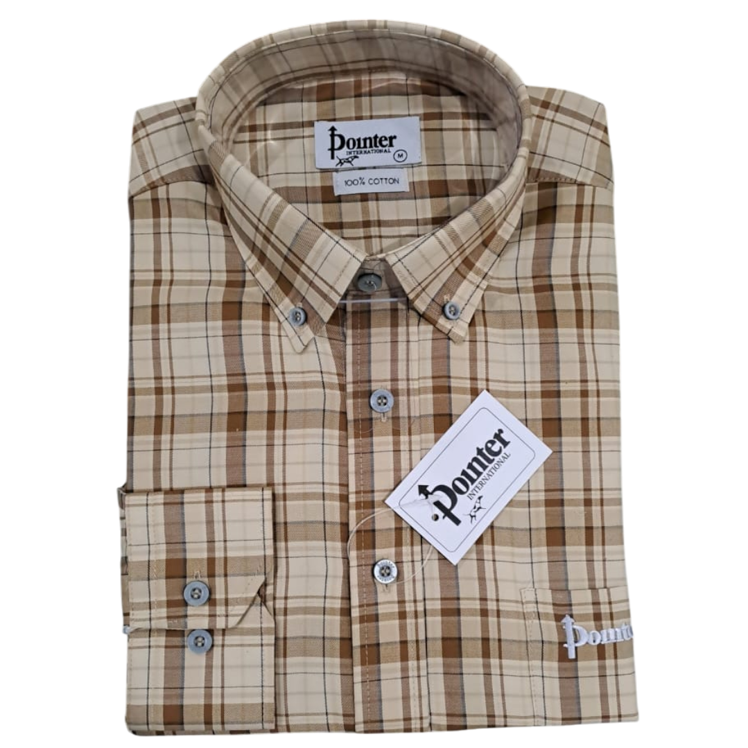 PS001 Check Long Sleeve Button Down Shirt - Brown - Pointer International