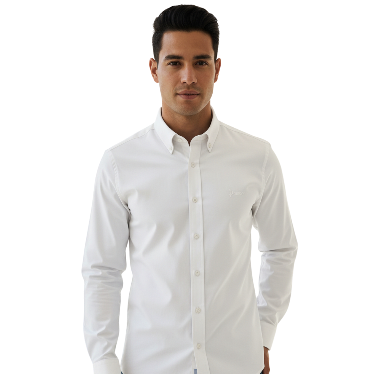 Pointer International White Cotton-stretch Long Sleeve Button Down Shirt