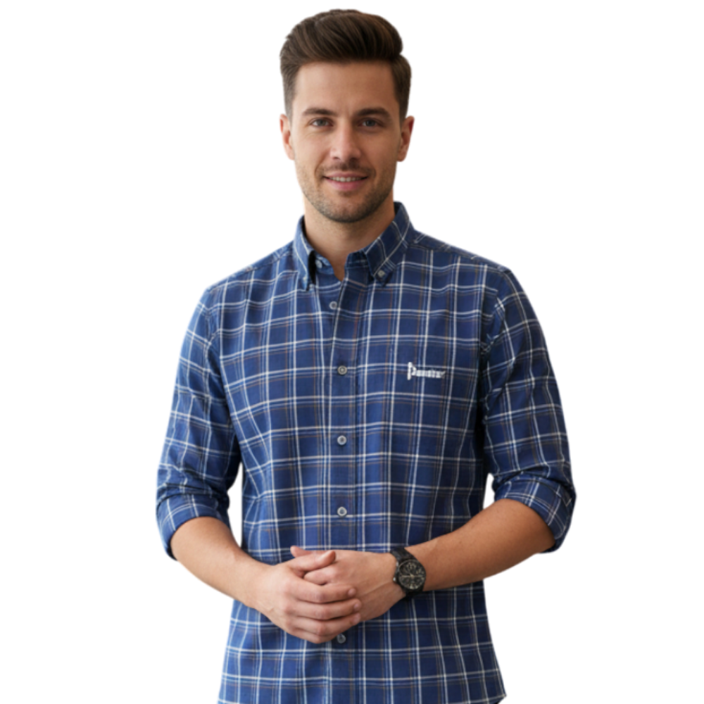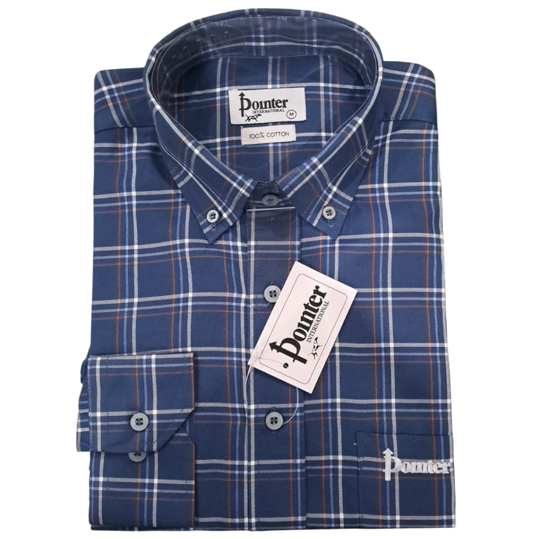 Pointer International Navy Check Cotton-stretch Long Sleeve Button Down Shirt