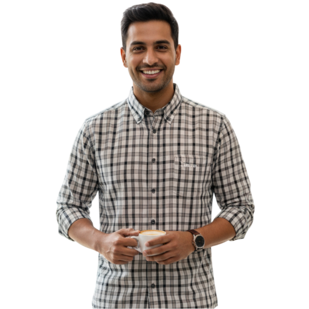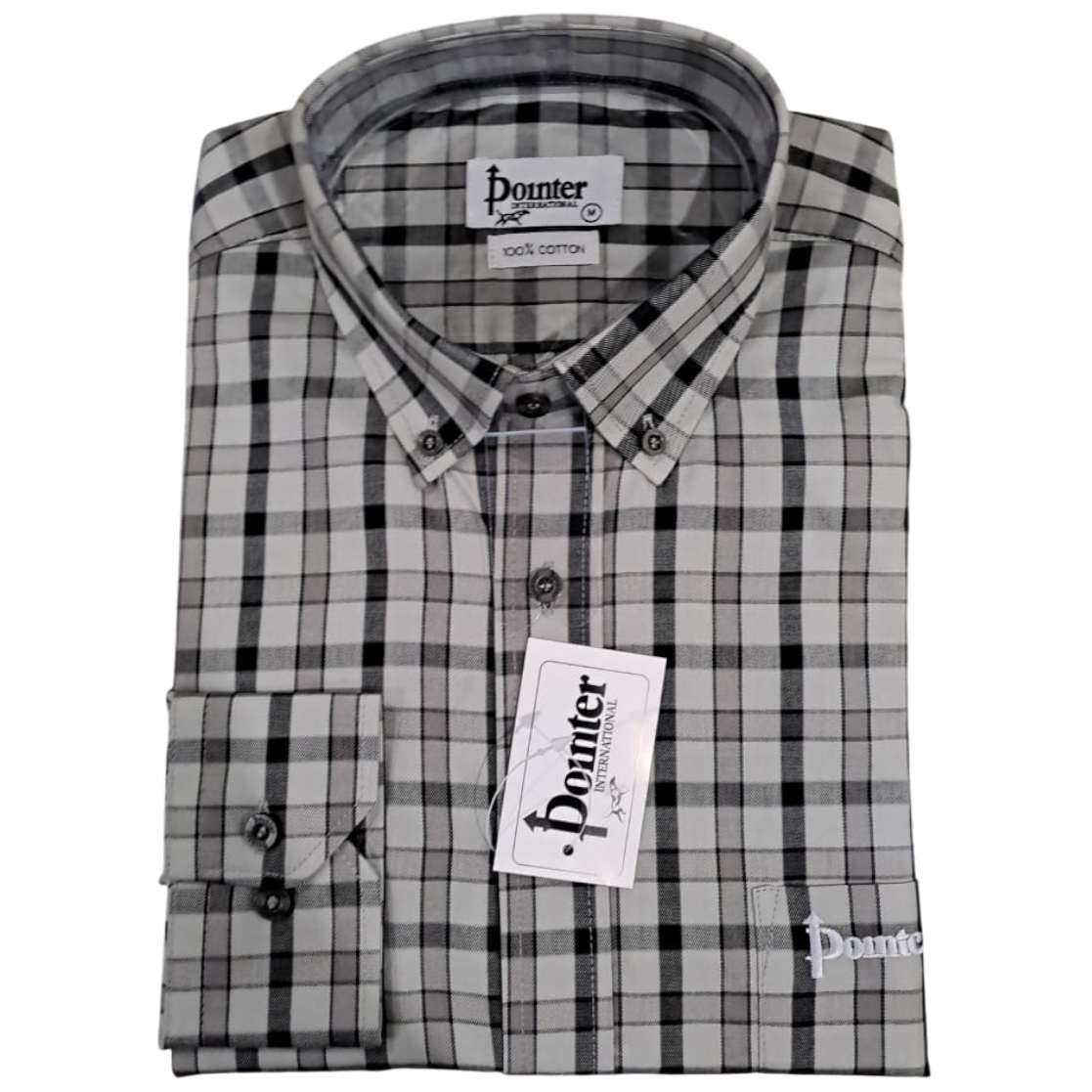 Pointer International Slate Check Cotton-stretch Long Sleeve Button Down Shirt